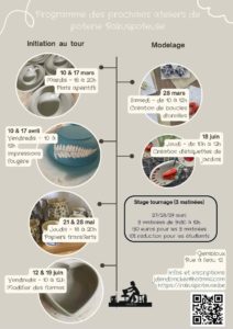 Des ateliers ponctuels, accessibles à tous, pour explorer différentes techniques de modelage et créer des pièces uniques.